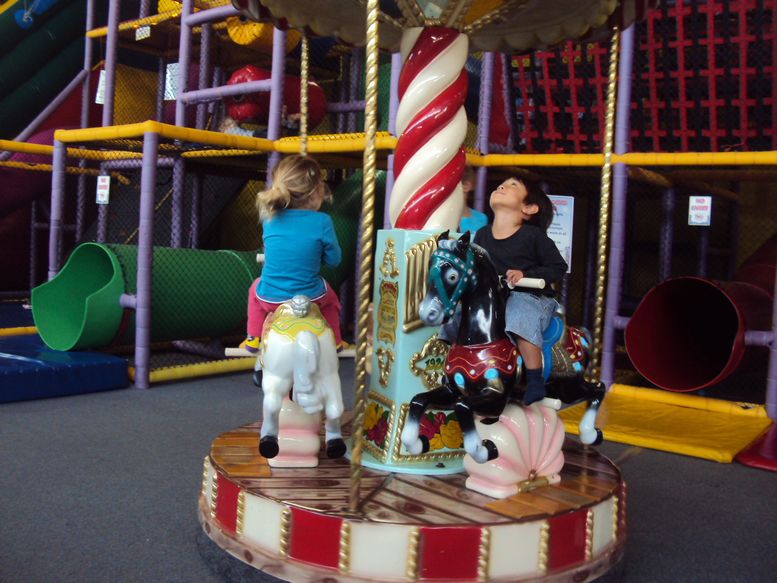 その間、セオっちは、ちゃっかりよその人のメリーゴーランド(有料)に