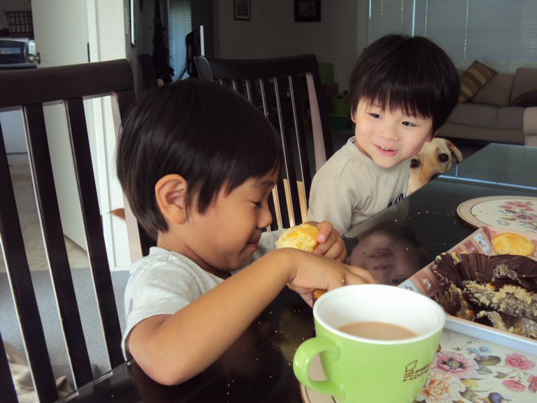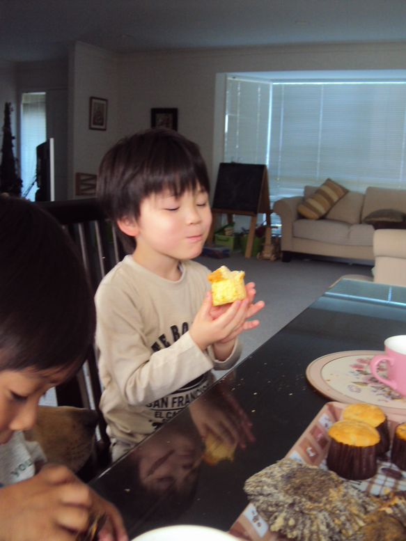 シフォンケーキチックなマフィンで軽いからか、4個ずつ食べたカジーズ。