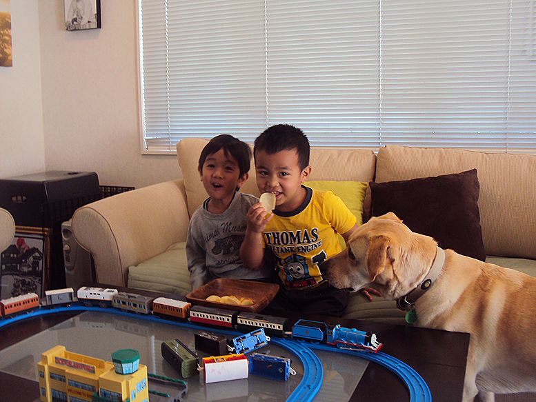 現金にも我が家に帰ってきた3歳児2人はそそくさと電車遊びに没頭しておりました。