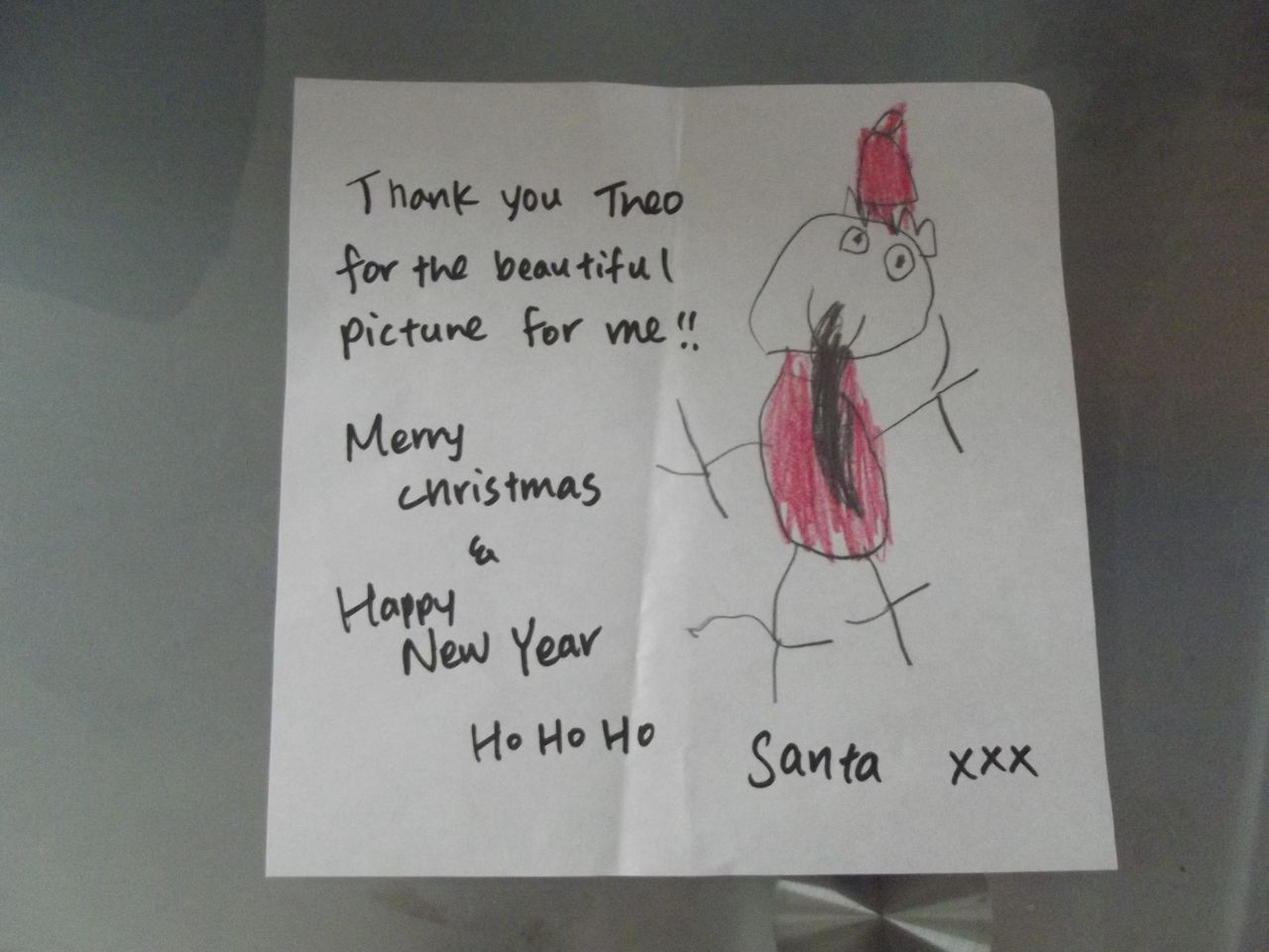 ↑見てくれるかなぁと書いたセオの絵の横には、サンタさんからのメッセージが・・・