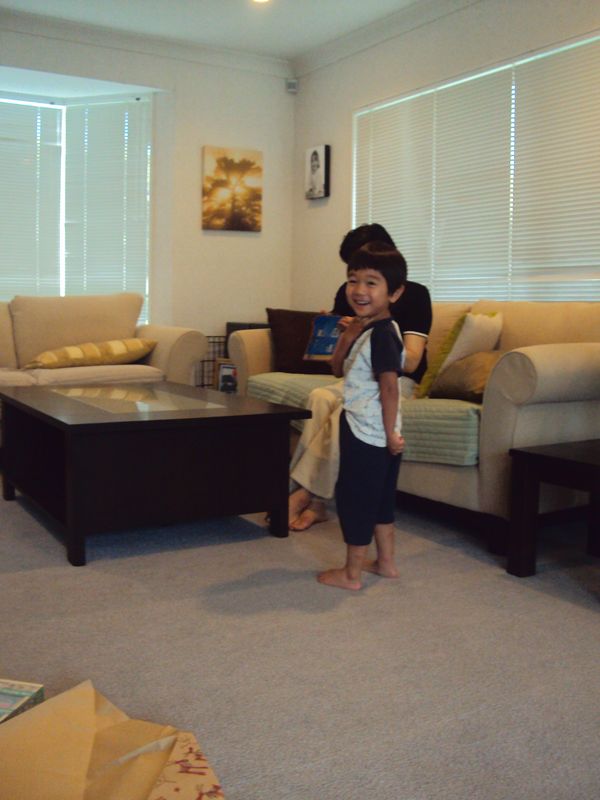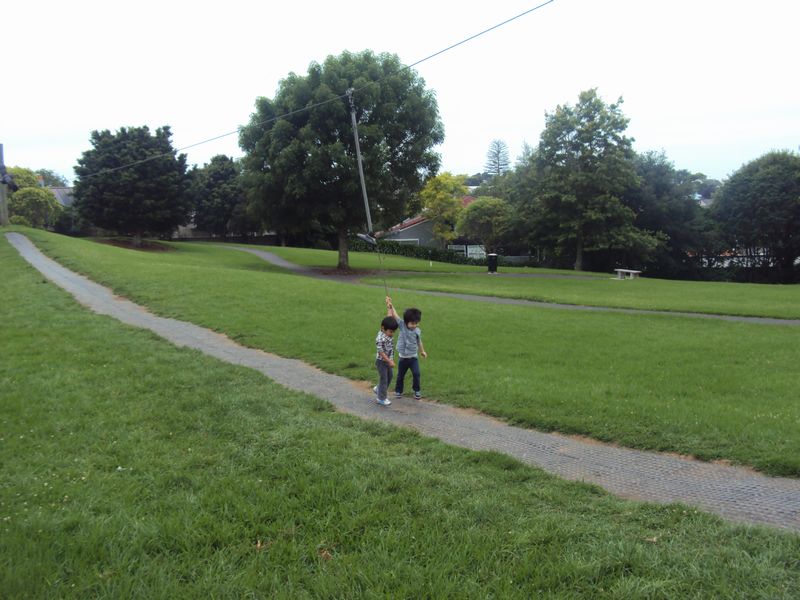 芝生の上で裸足、すでにセオと共に、KIWI・KIDSになりつつある