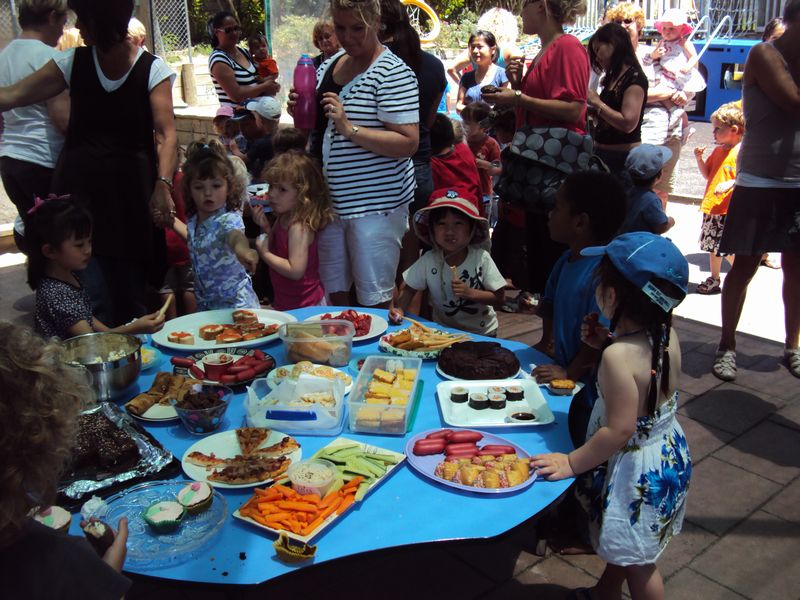 1品持ち寄り、立食、なんともKIWI Kindyらしい感じ。