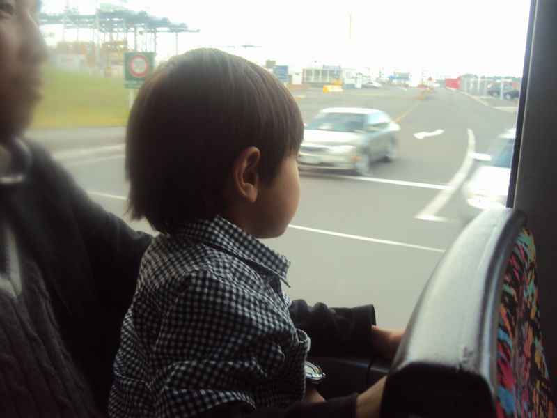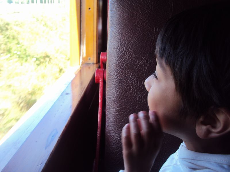 と、外に見える景色を楽しんだり、汽笛にびくっとしたりしていました。
