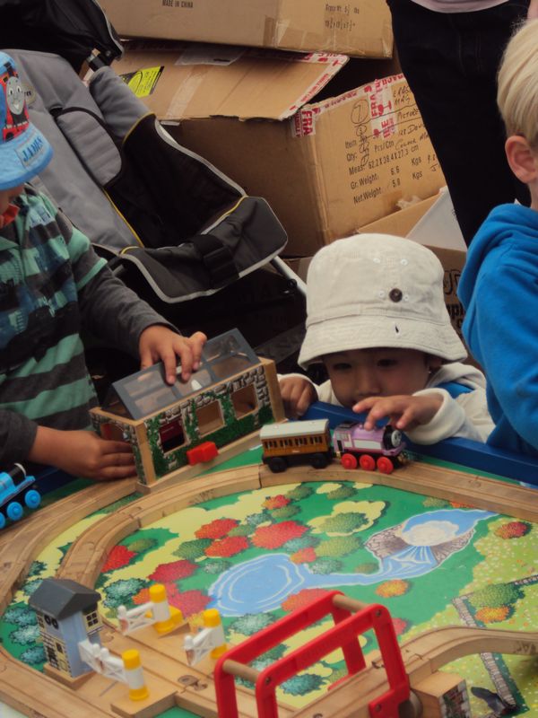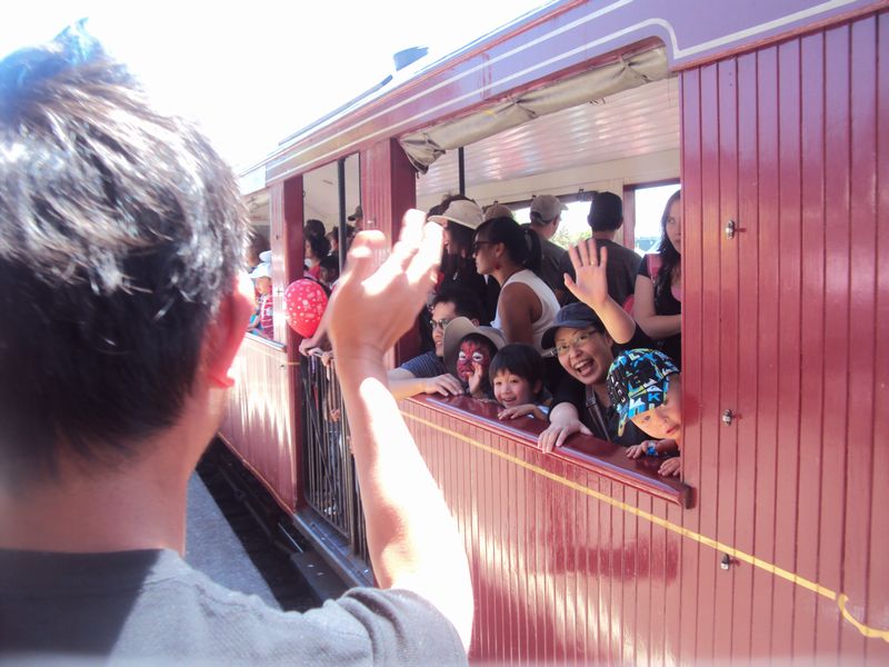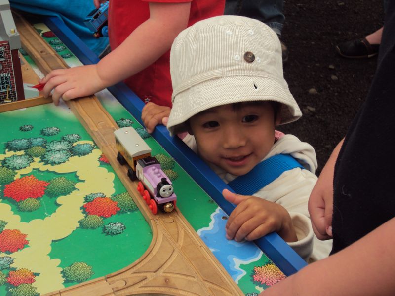 人ごみ(子どもごみ)の中を上手くぬって、鉄キチっぷりを発揮です。