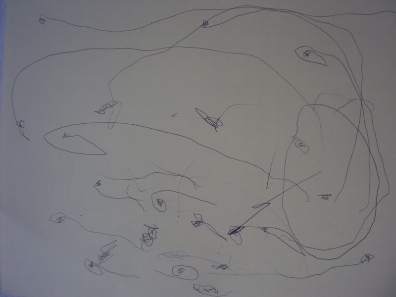 マミィーのお顔を描いて?と頼むとなんとなくマルに目・鼻・口が