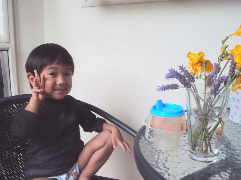 プレイセンターにセオを置いて、ちょっと家に戻ったときのこと。