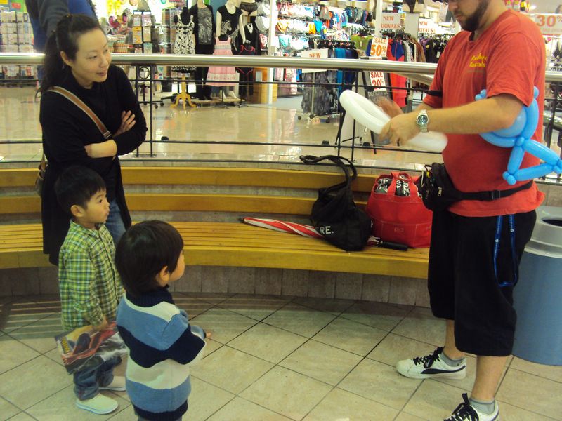 風船でなんでも作ってくれるよっつう、ホリデー中のアクティビティです。