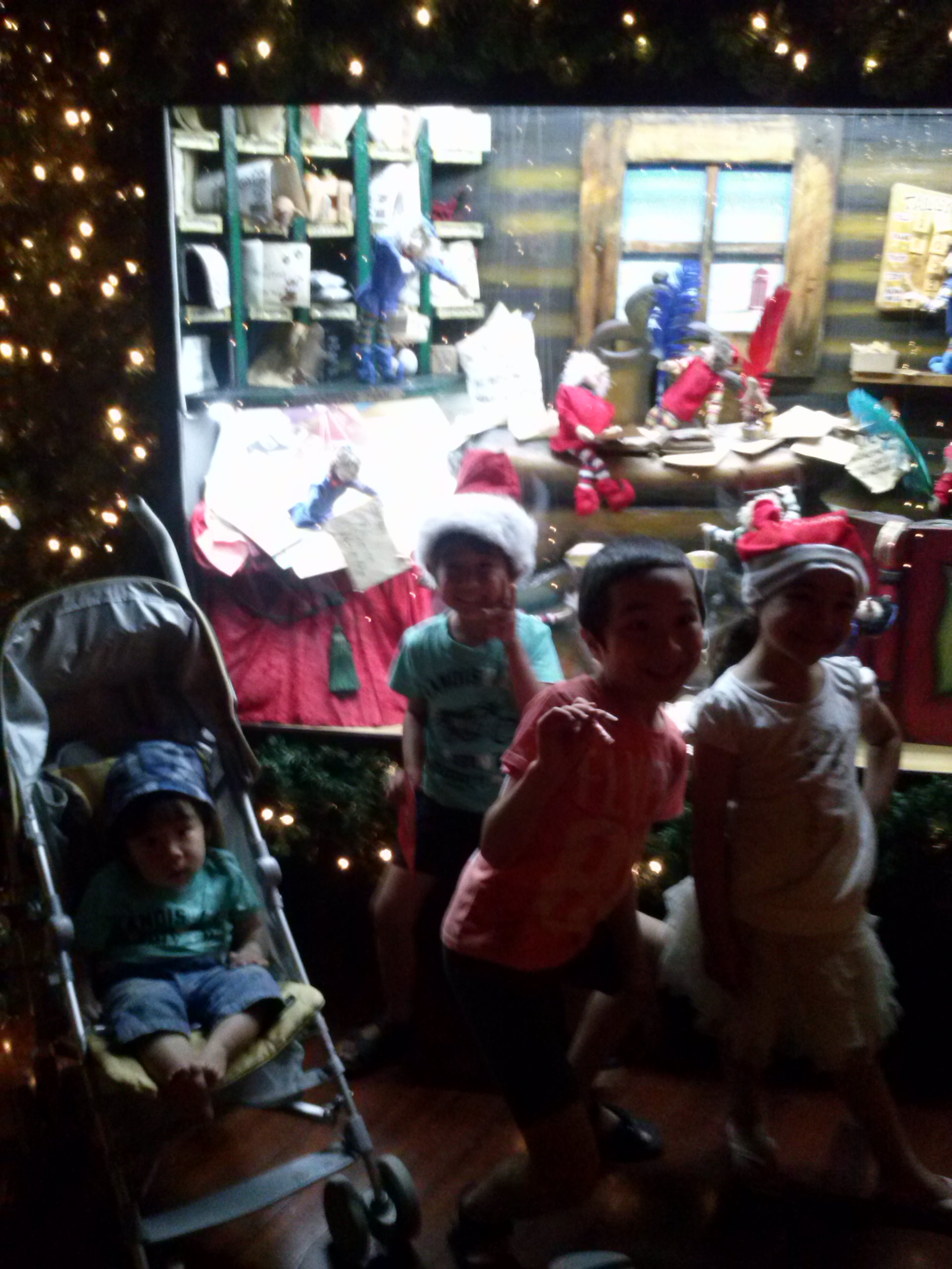 ツリーの森を抜けて、サンタの部屋でサンタにプレゼントを頼み、写真撮影。