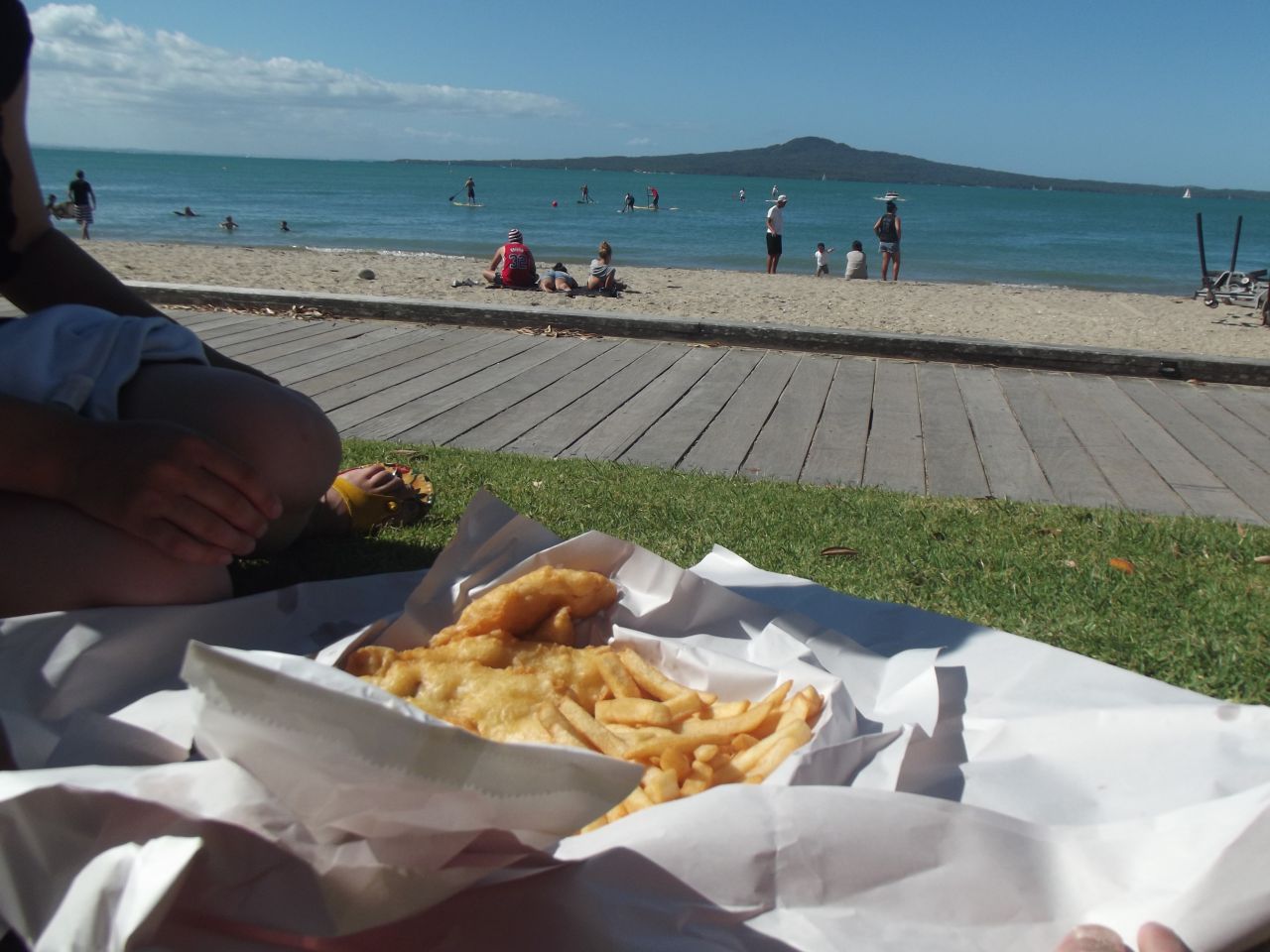 すごくいいお天気だったので、海沿いでFish and Chipsディナー、