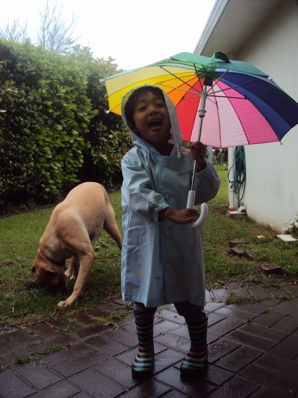カラフルな傘とカラフルな長靴をはくと、確かに気持ちが楽しくなりますね。