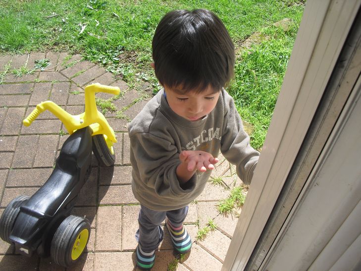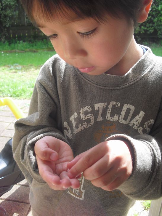 こうろぎやかまきりは触れないけど、てんとう虫なら手のせも平気みたいです。