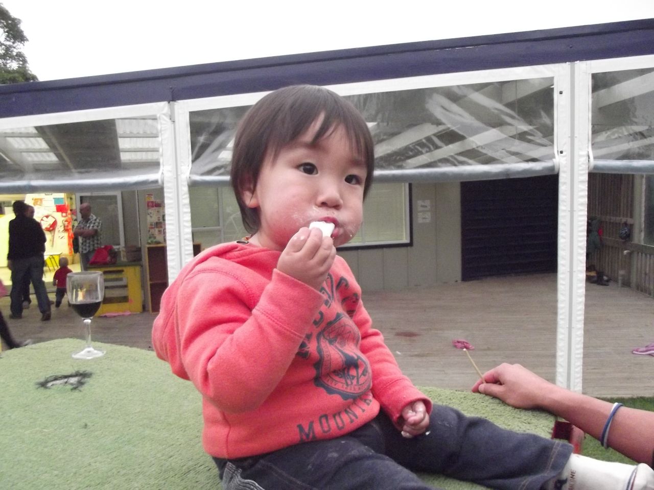 初めての焼きマシュマロに、ものすっごい食いつきを見せたヒューゴ、