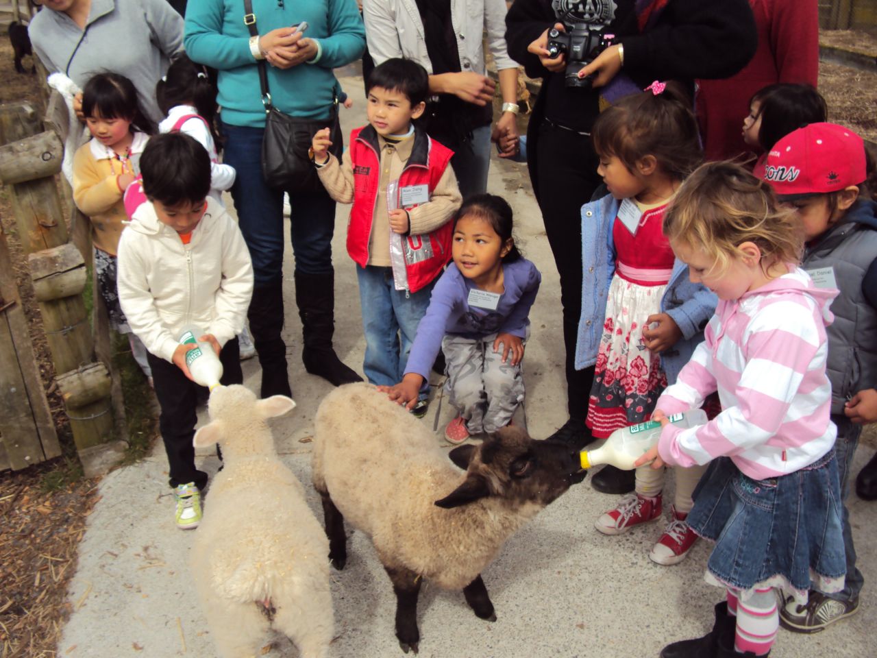 偶然TheoとJessieが1番のりで子羊ミルクやりができました。