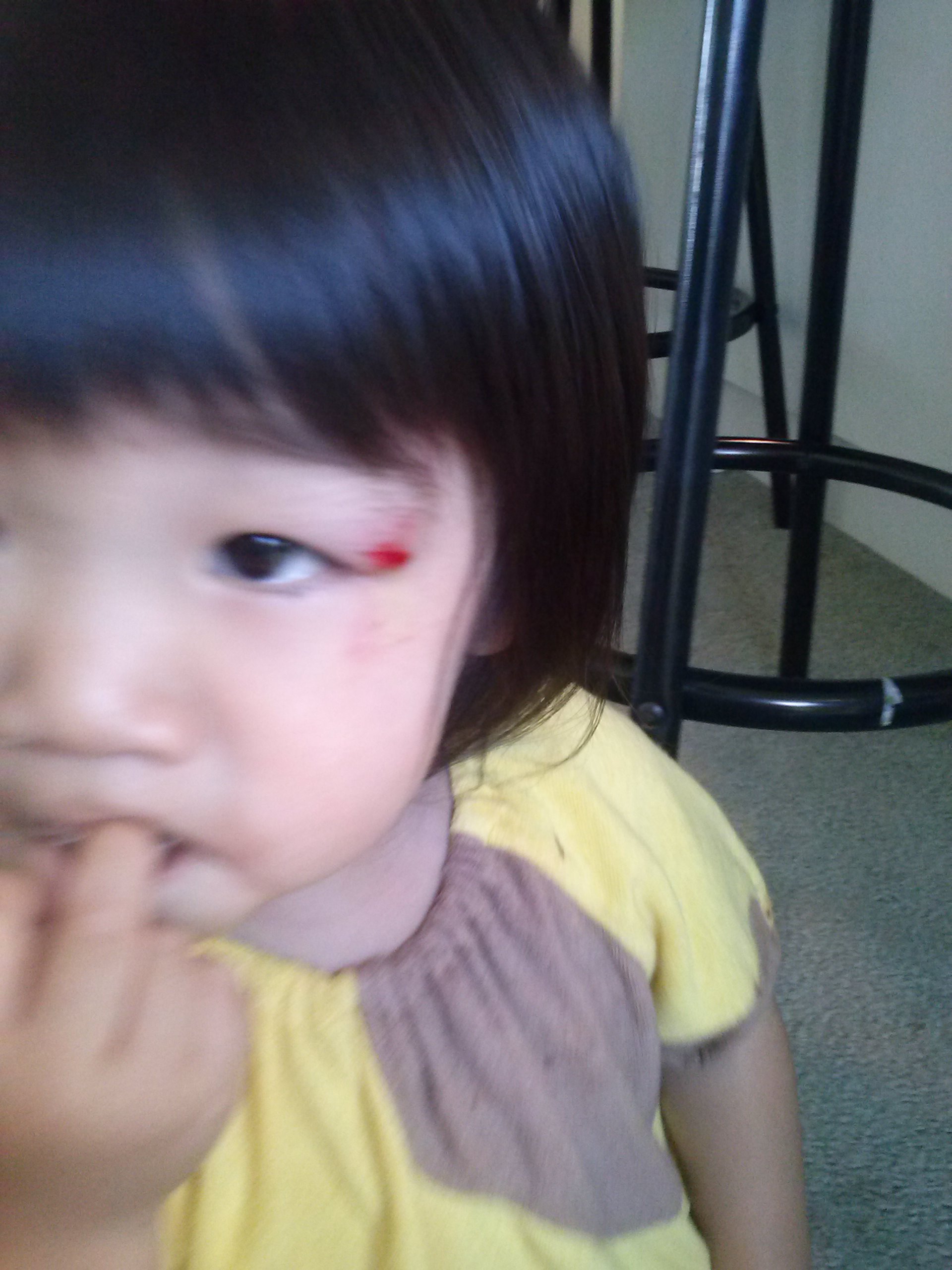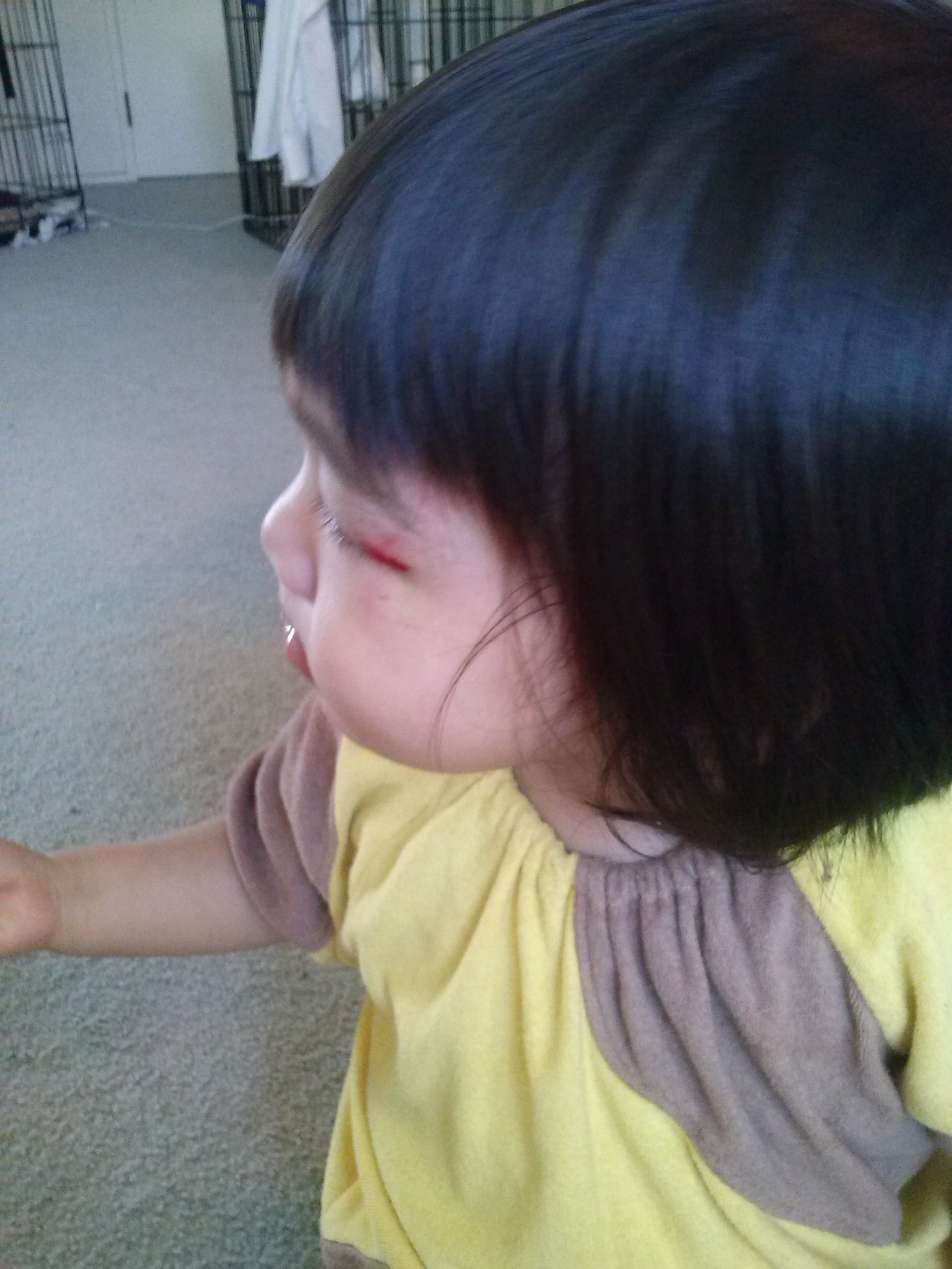 もうすでにかさぶたになりつつありますが、目は見事に腫れています。