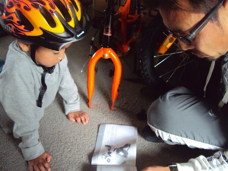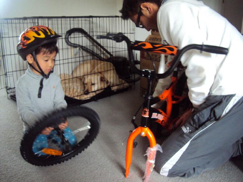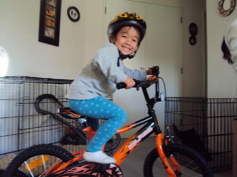 昨日は自転車完成直後に外に飛び出して行き、