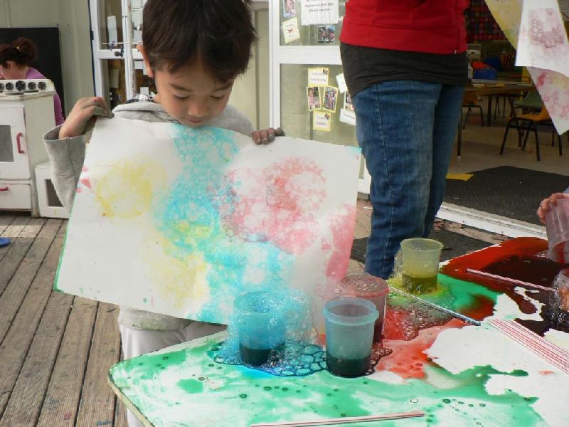 Bubble paint・泡を作ってから紙にうつしていきます。