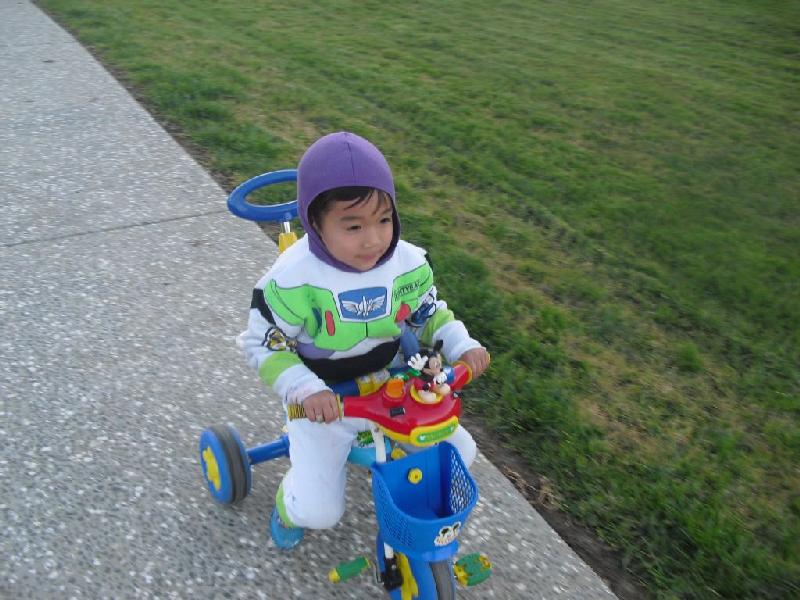 いつものように、Toy Storyのコスチュームを着てみたり、お決まりのバイクで走り回ったり、
