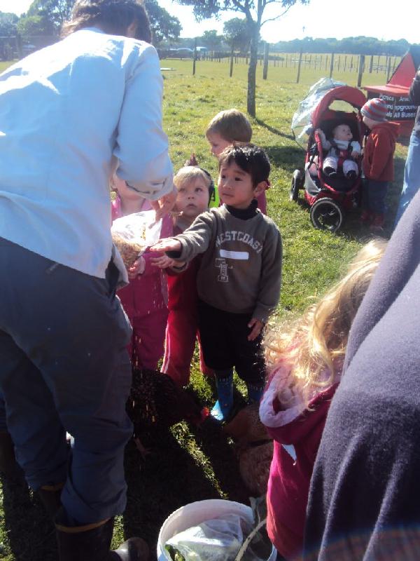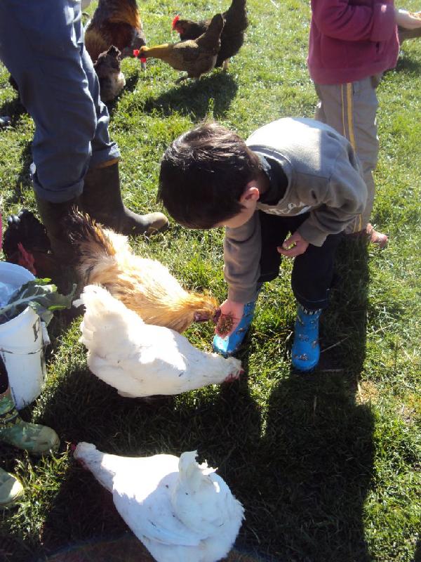 チキン(鶏)のえさやり。