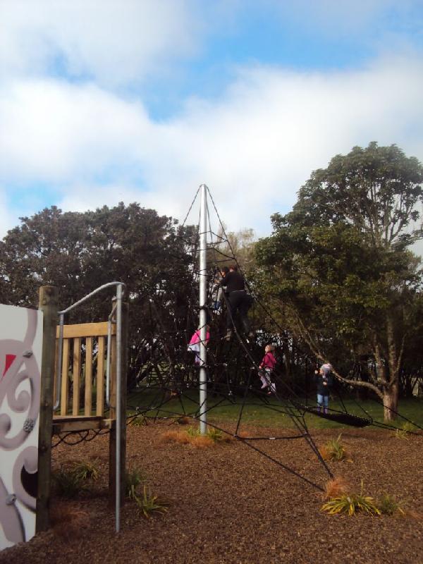 (一番高いところまでひょいひょい登っていったセオ、降りるときはJackiが助けてくれました。)