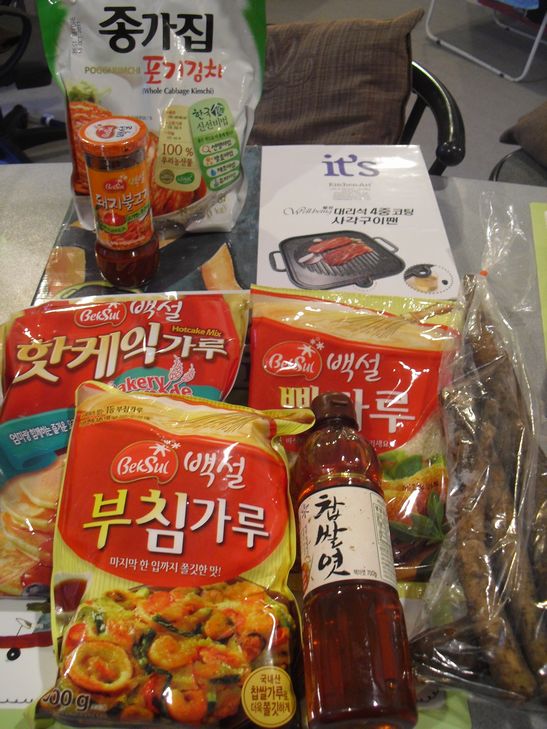 焼肉のたれ(韓国の)、韓国のり、ホットケーキミックス(安くておいしい)、