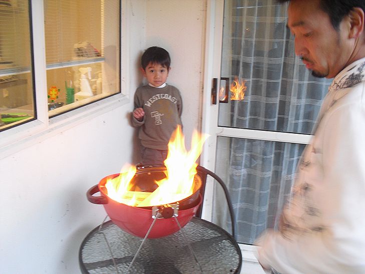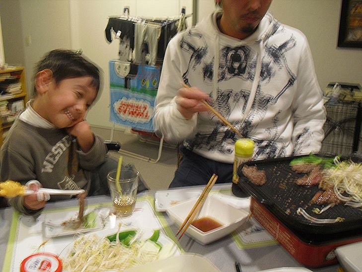 で、暗くなってきたので室内で焼肉~、換気扇がんがんで(笑)