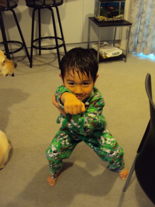 そして、調子に乗ったこの人↑は、子ども相手に、ボクササイズレッスンまで