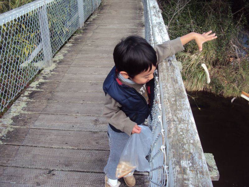 『おさかなにぱんあげたんだよねー、ぱーくってたべてたね』